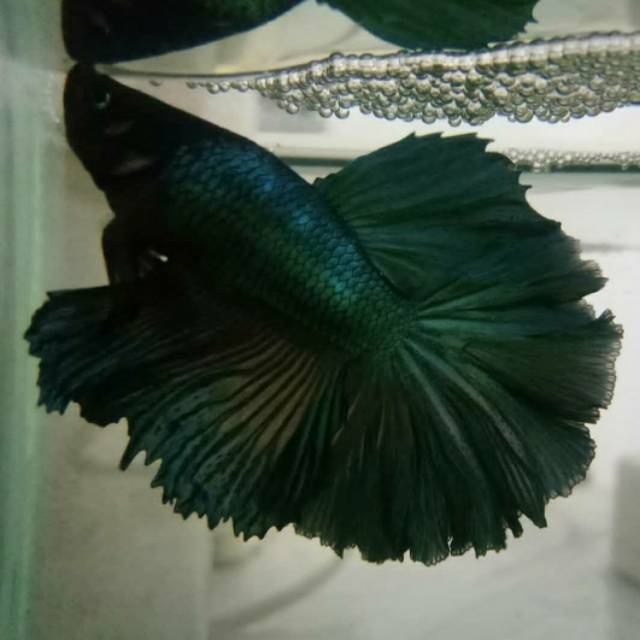 Jelas tampak lebih cantik layaknya warna langit yang berpadu dengan awan. Tetapi, jenis ikan satu ini memang tergolong agak mahal, yaitu sekitar rp 200 ribu hingga rp 1 juta. Gambar dorsal ekor ikan cupang giant yang sudah siap untuk dikonteskan dan berharap akan memenangkan juara 1 dan 2. Sebenarnya ada ikan cupang plakat yang full warnanya hitam, tetapi kami lebih tertarik berbagi tentang campuran ikan cupang plakat hitam yang ada campuran warna sisik putihnya. Matanya tidak terlihat sebab kepala dan tubuhnya berwarna hitam.
